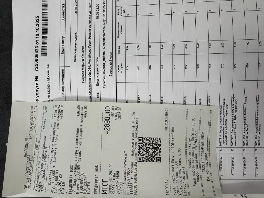 Заказала доставку кухонной мебели в магазине расположенным по адресу: Каширское ш., 61, корп. 3А, Москва. Номер заказа № 7253805422, Заявка на оказание услуги Nº 7253805423 от 19.10.2025, дата доставки 20.10.2025г. Однако заказ в указанную дату доставлен не был. Информация о задержке/отмене доставки предоставлена не была. Обращение в чат поддержки, звонок на горячую линию не помог решить проблему.