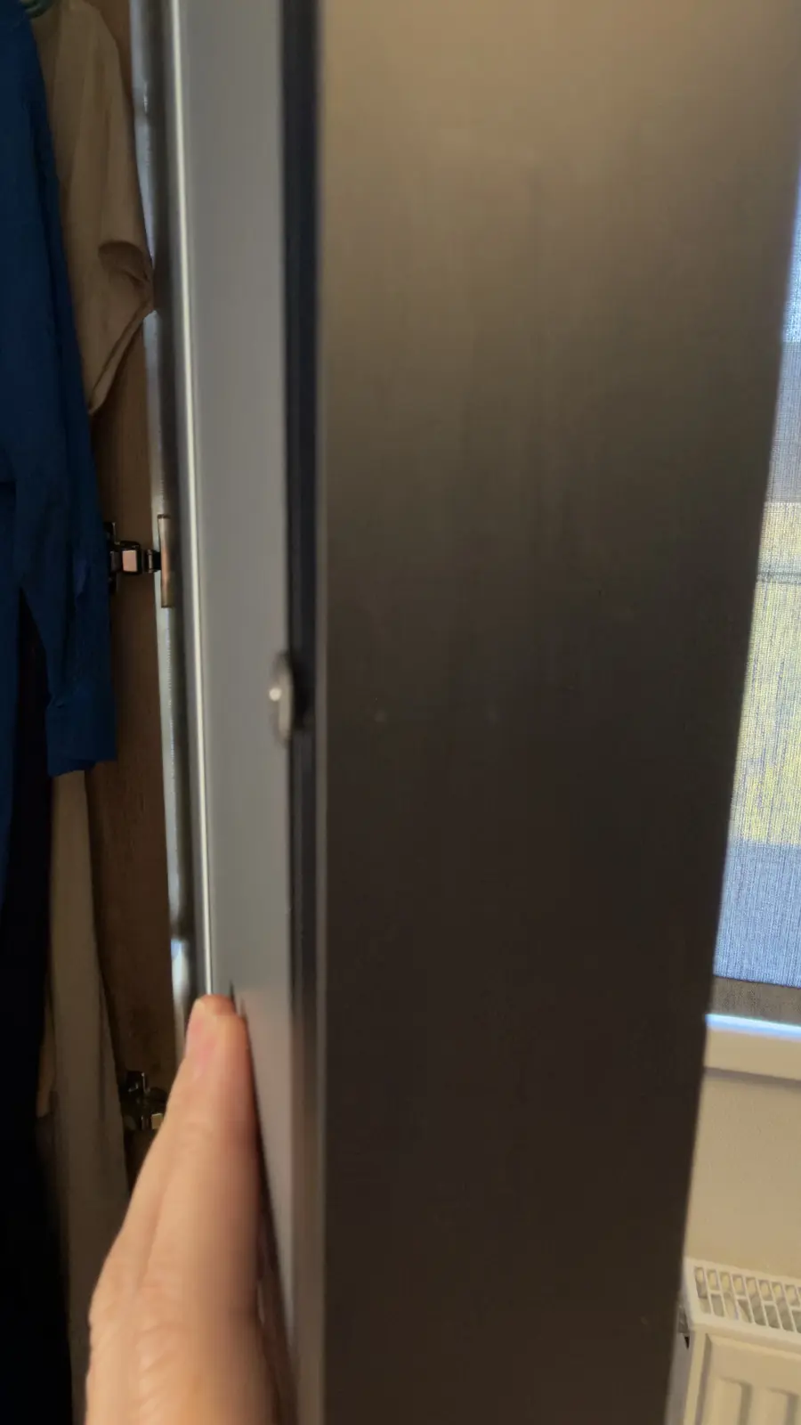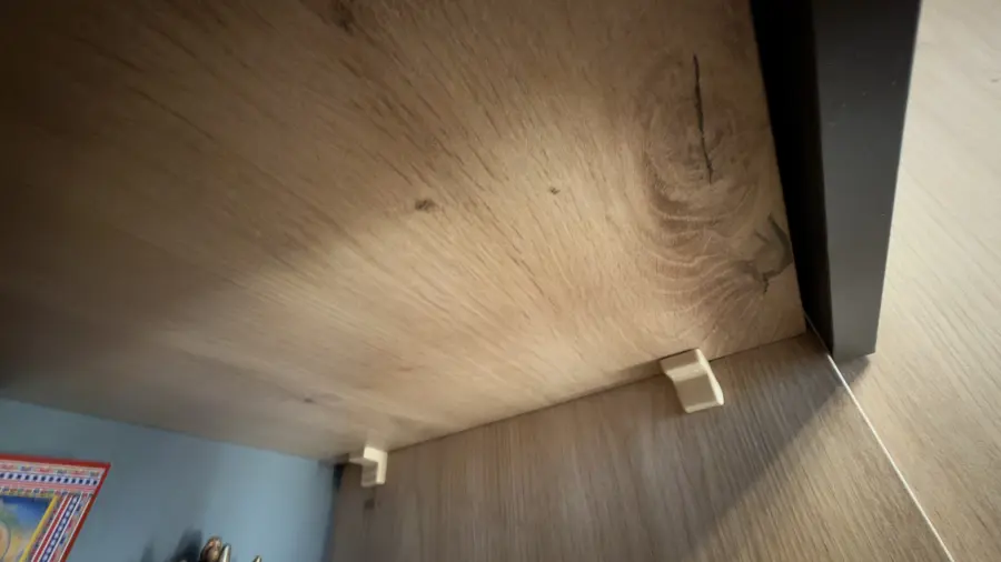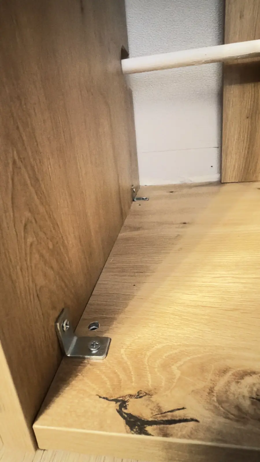 Полки в шкафу должны были быть установлены как скрытый монтаж, но мне прикрутили на пластиковые уголки.