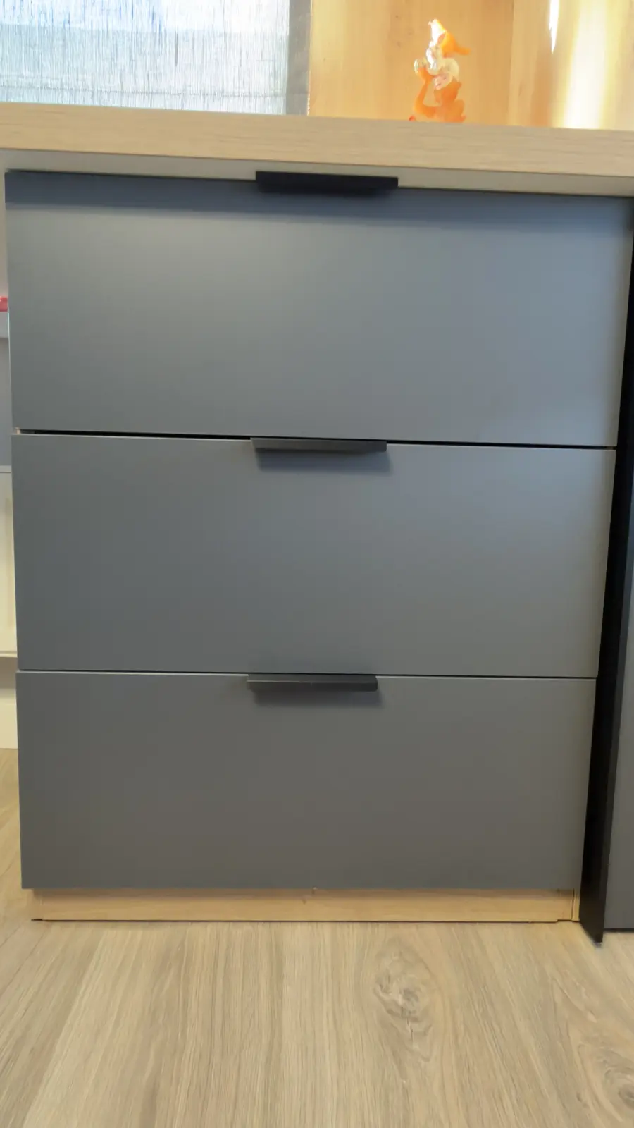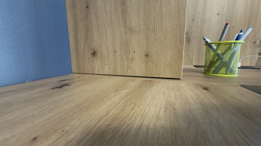 После установки столешницы на основой конструкции появились зазоры, перекосы так как столешница погнута на 2,5 мм. Ящики собраны криво, полки первый раз установили не ровно (сборщик сослался на кривые полы на которые он положил дсп🤓). Дверь шкафа с трещиной, фасады поцарапаны. Мою мебель когда таскали детали, он поцарапал. Загадили всю квартиру. После сборки остались лишние детали.