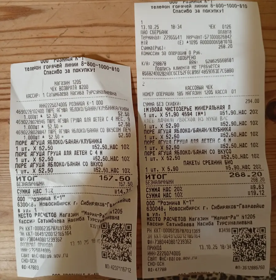 Я мама в декрете,приходится ходить в данный магазин,потому что на самомом деле немного магазинов которые находятся поблизости и имеют доступную среду,куда можно попасть с коляской.Очень часто в данном магазине жёлтые ценники по акции не совпадают с действительностью,акция уже кончилась,а ценник висит, его забыли убрать.При попытке потребовать продать тебе товар по акции,или вернуть разницу в чеке ,администратор магазина и продавцы отказываются это делать,просто предлагают отказаться от товара и вернуть деньги.Обьясняя это тем что они не хотят платить разницу из своего кармана.Почему я как покупатель должна из за этого страдать.Придя с 6 месячным ребенком в магазин 13.10.2025 купила по акции пюре Агуша в ассортименте ,цена за 1 шт-52 рубля,при покупке от 3 шт-39 руб,мне три пюре посчитали по 52 рубля.Администратор магазина,пыталась объяснить,что у них в ценниках якобы что то не так пропечатано,что я якобы взяла не то пюре,хотя все было правильно.Она не решила мой вопрос,не объяснила суть акции и что все таки взято не правильно,просто сказала давайте пюре,мы сделаем вам возврат денег.Мы просто ушли из магазина без нужного нам товара.На вопрос почему в вашем магазине всегда такой бардак с ценниками,она в хамской форме ответила"Не приходите сюда".