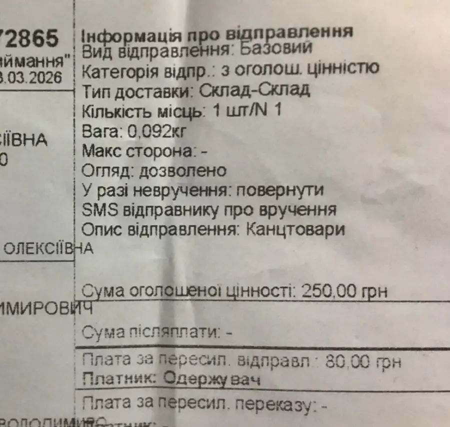 Укрпочта - Наценка +80% на посылку
