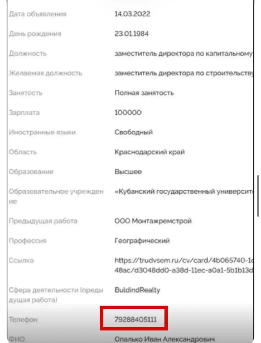 Дополнительные вопросы вызывает участие Опалько в подготовке этой конструкции. Источники указывают, что именно Осепская занималась его трудоустройством, размещала объявления и оставляла для связи свой номер телефона. Одна из таких публикаций датирована 14 марта 2022 года — датой, подтверждающей устойчивость их связи.